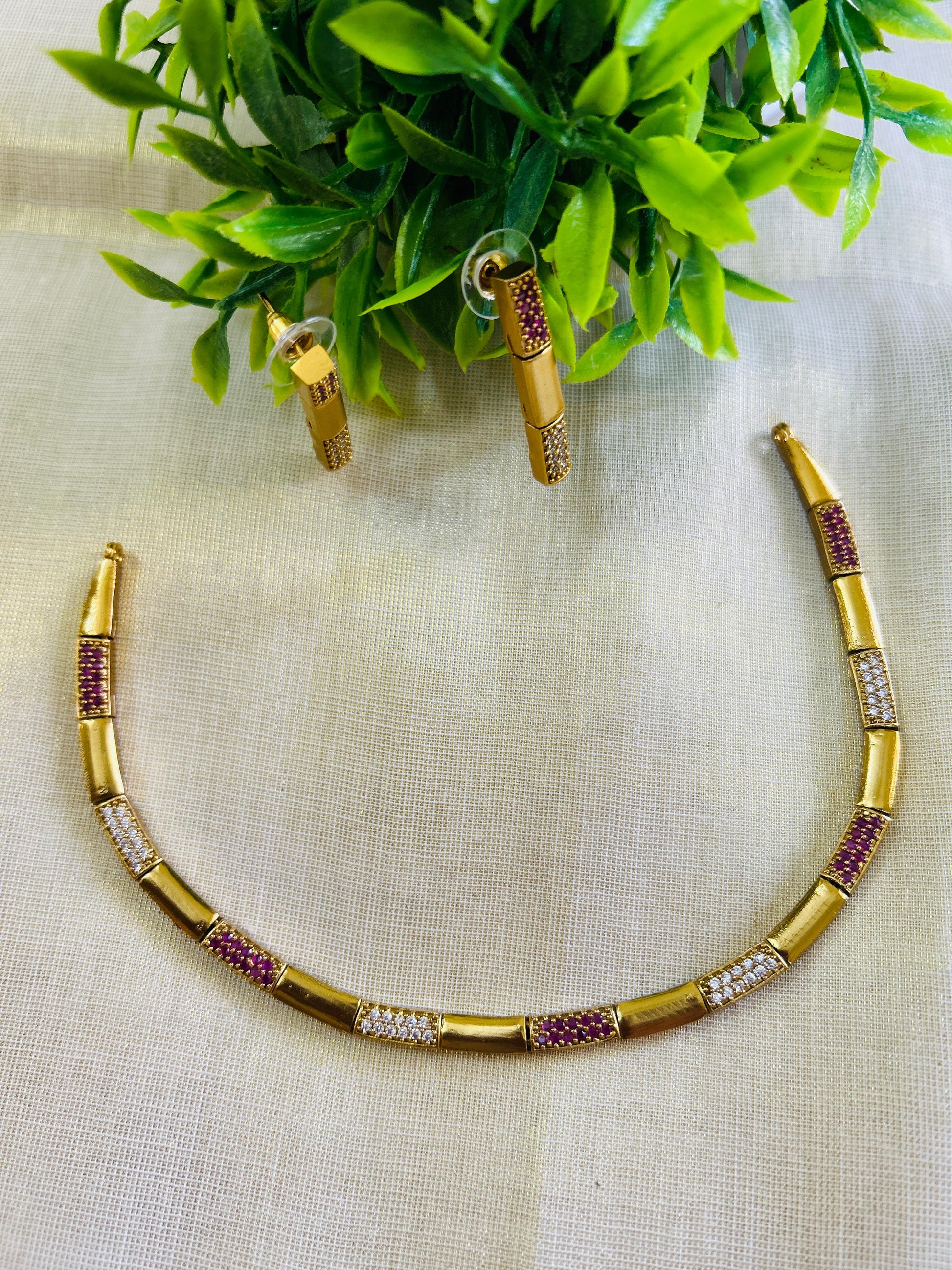 Red and White stone necklace with earrings